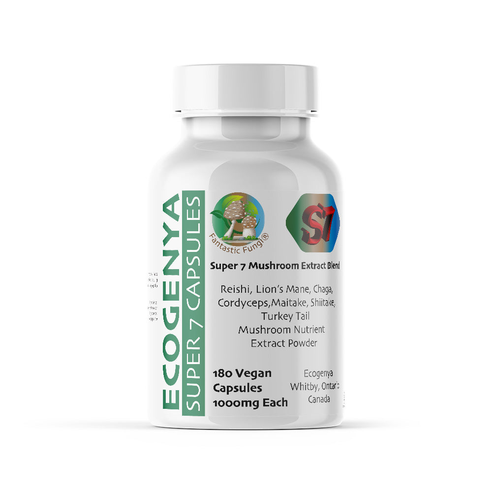 Notre poudre d'extrait de mélange de champignons Fantastic Fungi® Organic Super 7 est composée à 100 % de fructifications de Reishi (ganoderma lucidum), Crinière de lion (hericium erinaceus), Cordyceps Militaris, Chaga (Inonotus obliquus), Maitake (Grifola frondosa), Shiitake (Lentinus). edodes) et Turkey Tail (Coriolus versicolor) ici même en Ontario Canada et contient plus de 35 % de nutriments en bêta-glucane.